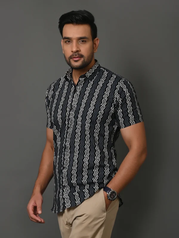 Zig zag black printed men’s half sleeve shirt